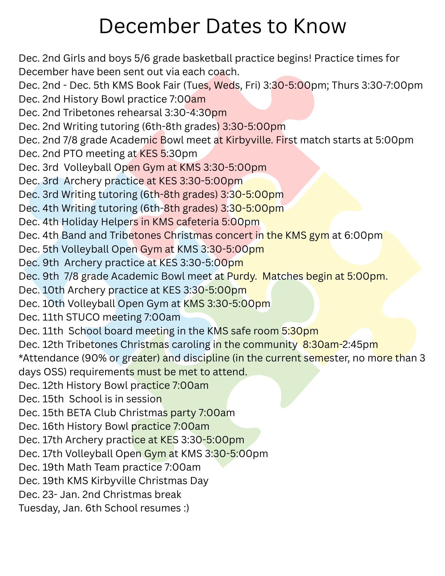 What a perfect time of year to demonstrate December’s character trait, Compassion/Kindness – Caring for others. Students across Missouri are participating in different activities that focus on compassion and kindness. It is something that is free, it can be big or small, and it can make your child feel good whether he or she gets it or gives it away. Thank you for all the compassion and kindness you share throughout the year. Wishing you a happy holiday season! :)